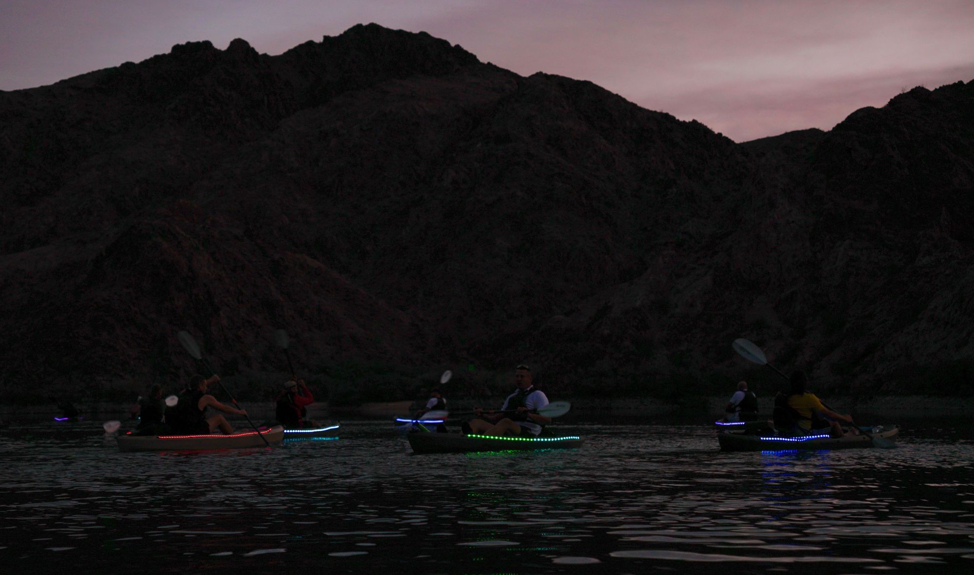 As desert wildlife comes to life and the fiery sunset ignites the sky, paddle along the Colorado River in illuminated kayaks.